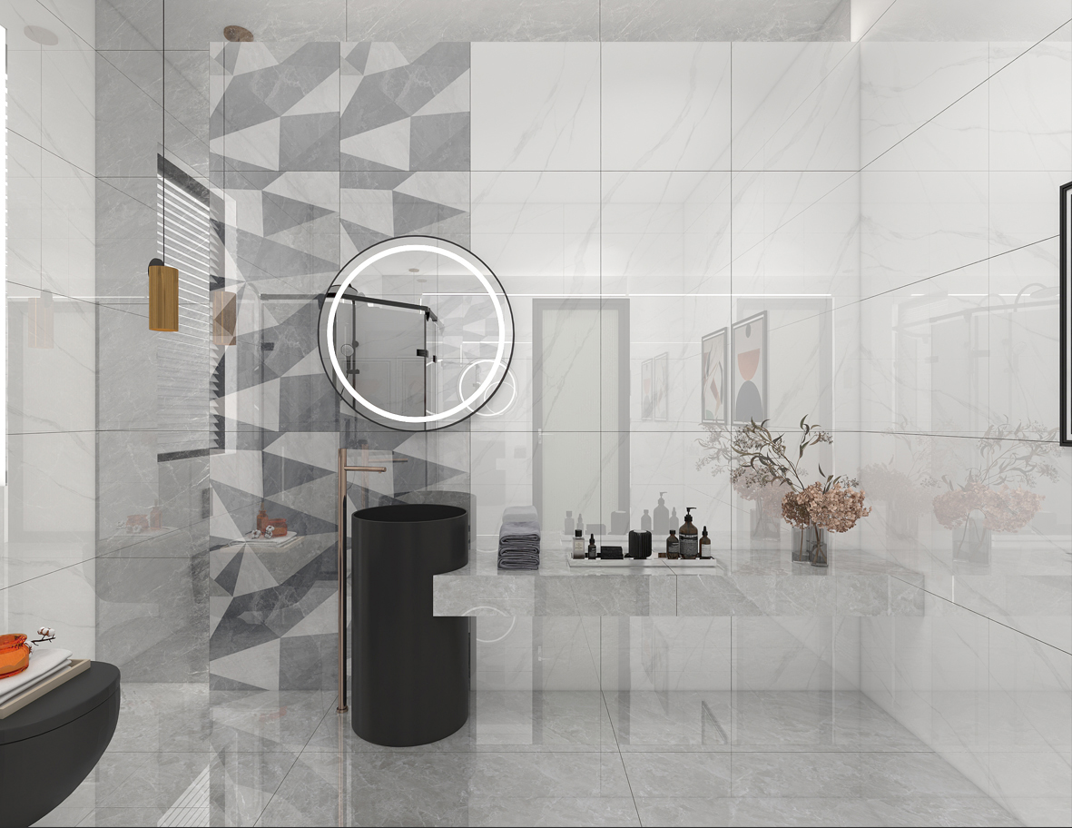 小岩板具有高致密性,抗污的性能,质感细腻,出色的硬度经得起切割、挖孔的深加工,可以应用在浴室柜台面和洗手盆,还可以与地面、墙面瓷砖整体应用,轻奢大气。