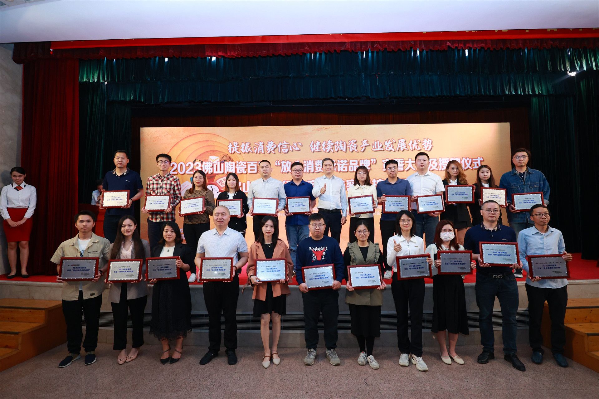 在过去的2022 年,是陶瓷行业被行业统称为20多年来最为艰难的一年,为推助佛山陶瓷产业在环境低迷时期的健康发展,在佛山市市场监督管理局指导下,由建筑卫生陶瓷行业双承诺服务规范标准委员会、佛山市禅城区消费者委员会、佛山市禅城区陶瓷行业协会联合主办了2023百家“佛山陶瓷放心消费承诺品牌”评选活动。在宣誓大会及授牌仪式中,迪加瓷砖脱颖而出,力压群雄,荣获“佛山陶瓷放心消费承诺品牌”称号。