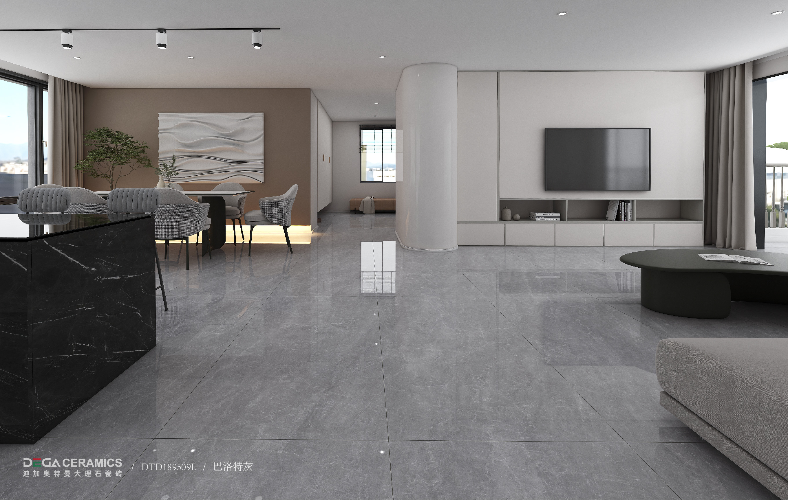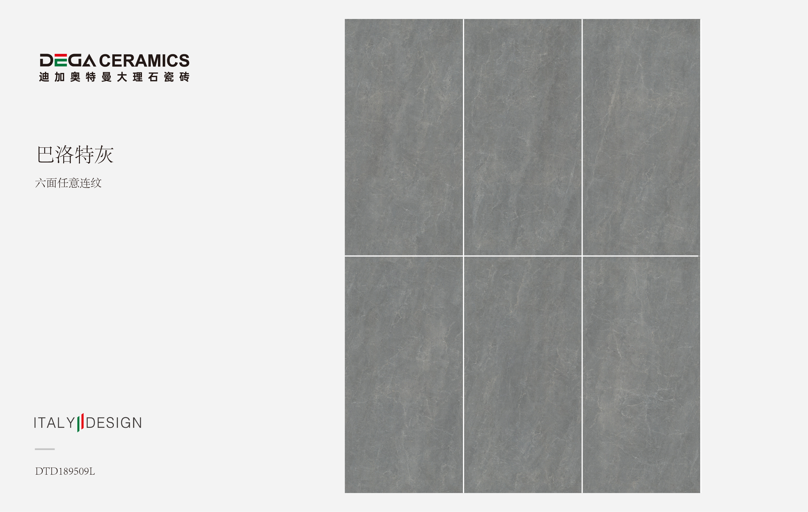 迪加瓷砖品牌长期与欧洲众多知名设计公司保持深度合作,深具欧洲时尚文化敏感度,把欧洲时尚设计与中国艺术相融合,自主设计开发出别具一格的原创产品。迪加奥特曼大理石巴洛特灰,设计灵感正是来自巴洛特。以优雅的高级灰为底,细小白色纹理随意游走其中,画龙点睛的点缀有着十足的高级感十足。纹理自然衔接,整体空间连贯统一,纹理自由舒展,无限延伸,真正还原了大理石天然纹理的自然美。